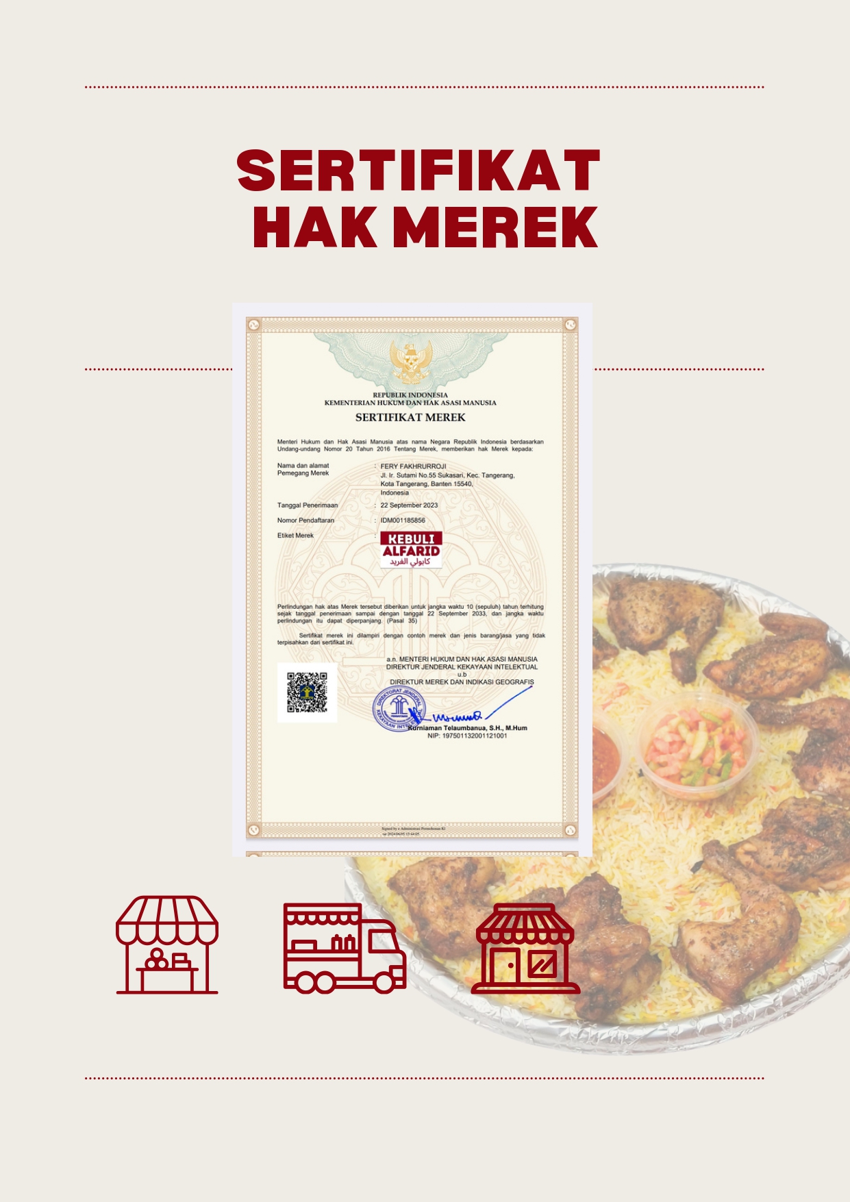 Dengan sistem operasional yang rapi, menu yang terbukti diminati pasar, serta model bisnis yang fleksibel (outlet, ghost kitchen, catering, dan event), Kebuli Alfarid membuka peluang bagi investor dan mitra untuk bertumbuh bersama dalam industri F&B yang terus berkembang.
